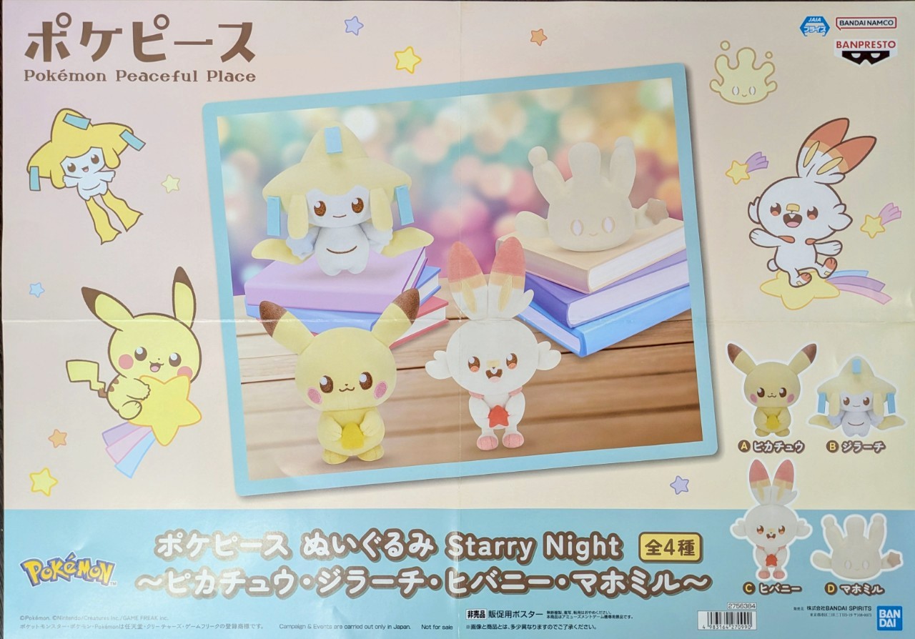 【ポケピース ぬいぐるみ Starry Night~ピカチュウ・ジラーチ・ヒバニー・マホミル~】