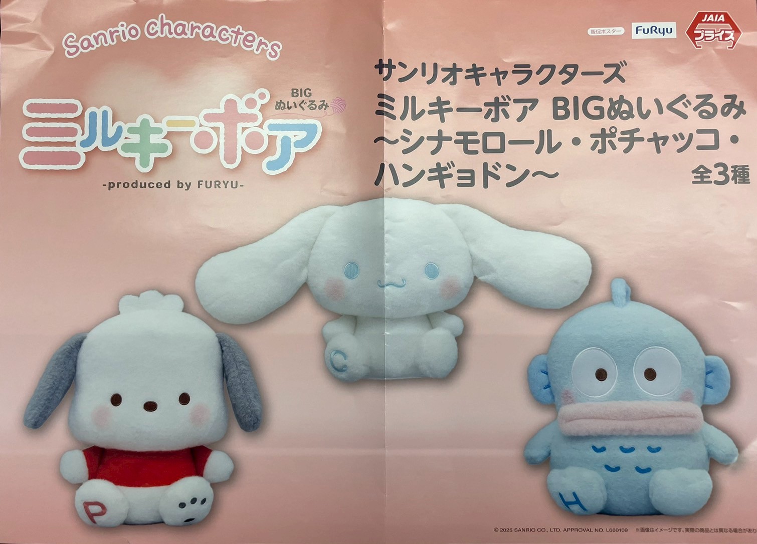 ミルキーボア BIGぬいぐるみ~シナモロール・ポチャッコ・ハンギョドン~】