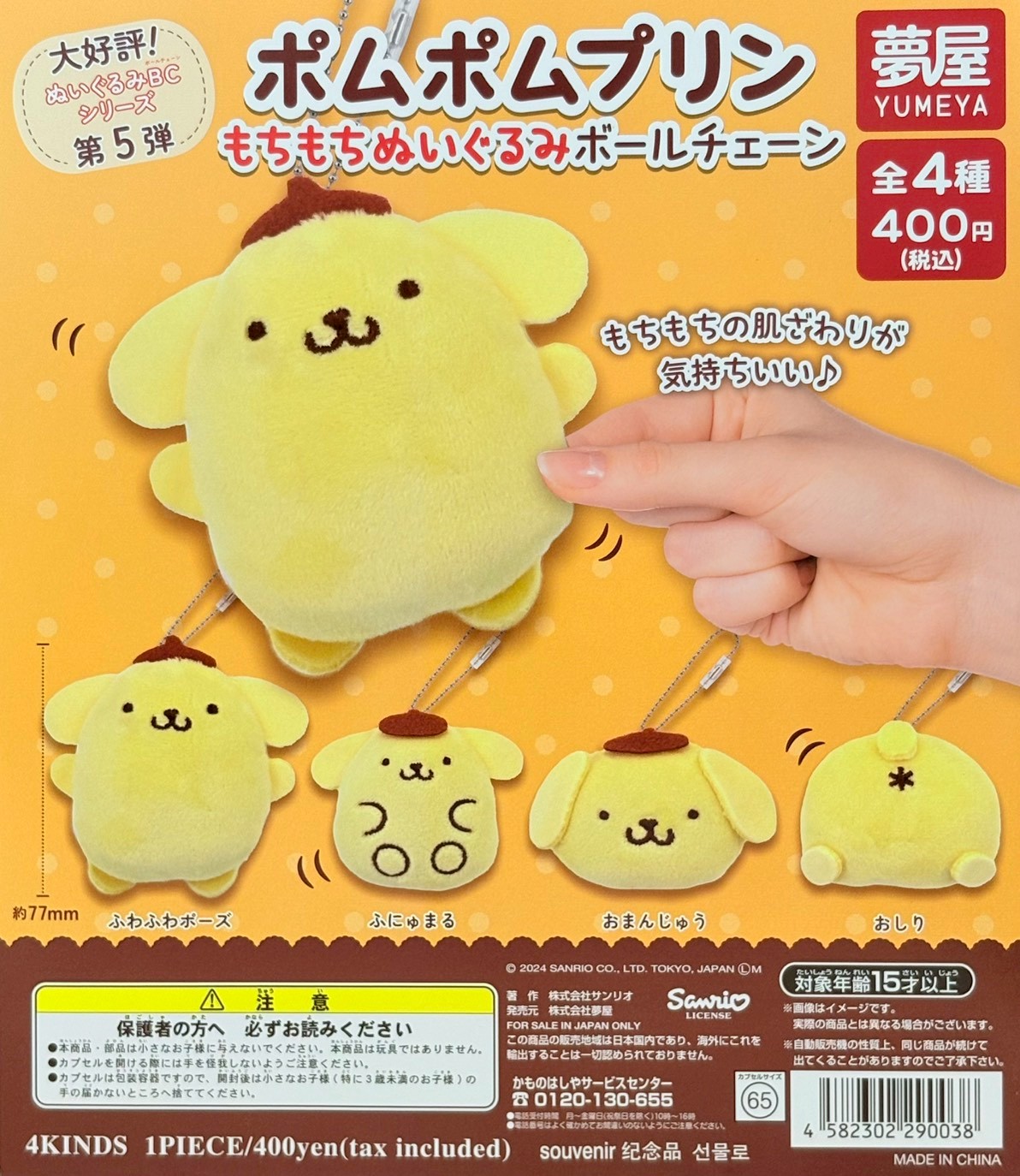【ポムポムプリン もちもちぬいぐるみボールチェーン】