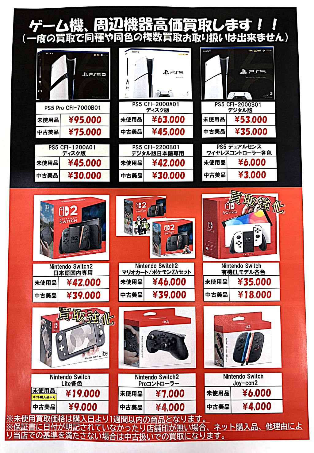 ★ゲームハード買取更新★ 2026年2月27日 Switch有機ELモデル、SwitchLiteもまだまだ人気商品につき買取強化中!! 引き続きお持ち込みをお待ちしております!! ※2026/2/27現在の価格となります。 在庫状況・状態によってお値段が変動いたします。予めご了承ください。 **************** こちら↓もぜひチェックしてみてくださいね♪(*´▽`*) ・最新のイベント情報はこちら ・最新の買取情報はこちら 共有: X で共有 (新しいウィンドウで開きます) X Facebook で共有 (新しいウィンドウで開きます) Facebook 友達にメールでリンクを送信 (新しいウィンドウで開きます) メールアドレス